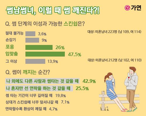 썸탈때 남녀가 생각하는 스킨쉽 수위는 얼마나 되는지 확인해봅시다.