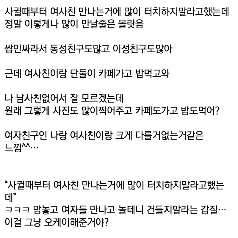 여사친 많은 남자친구, 진짜 친한 여사친과 자주보는 남자친구 둘다 진짜 극혐이야.
