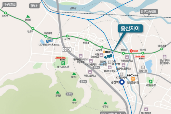 중산 자이의 입지는 대구 2호선 역세권입니다. 바로 근처에 이마트까지 있으니 너무 좋겠습니다. 이걸 입증 하듯 이미 기존 경쟁률 역시 매우 높았습니다.