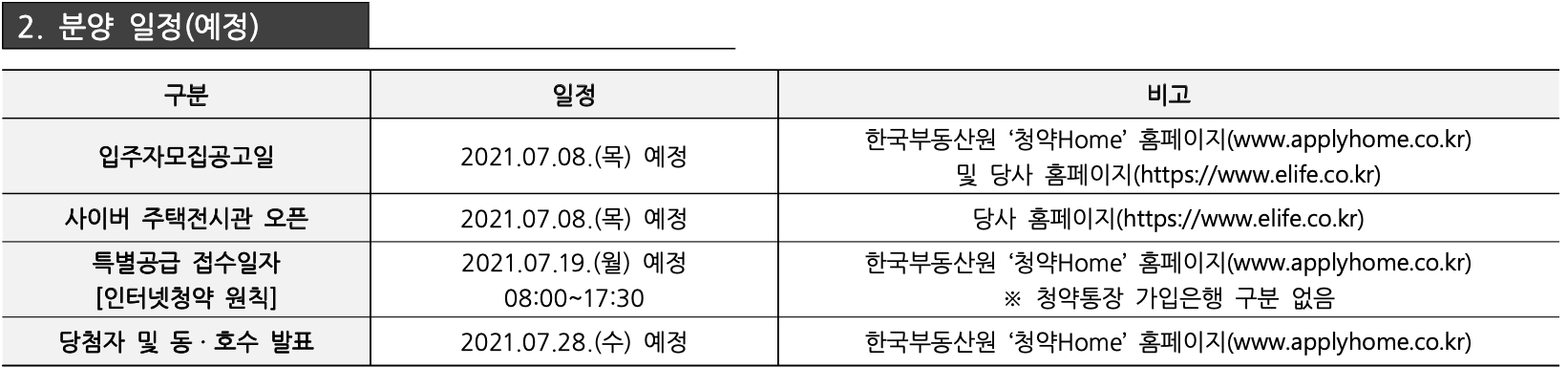 - 특별공급 접수일 : 7월 19일 (월)