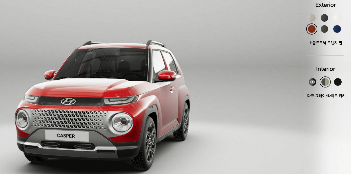 현대 캐스퍼 색상은 6가지 입니다. 👉 홈페이지에 들어가시면 색상을 지정하여서 볼 수 있으니 참고하시길 바랍니다.
